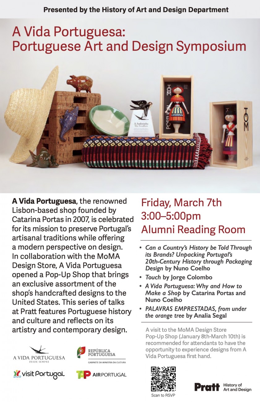 A convite do Pratt Institute e no âmbito da mostra na MoMA Design Store, Nuno Coelho, Jorge Colombo e a nossa fundadora, Catarina Portas, apresentam a 7 de Março, no Alumni Reading room do Pratt Institute, três palestras sobre arte e design em Portugal.