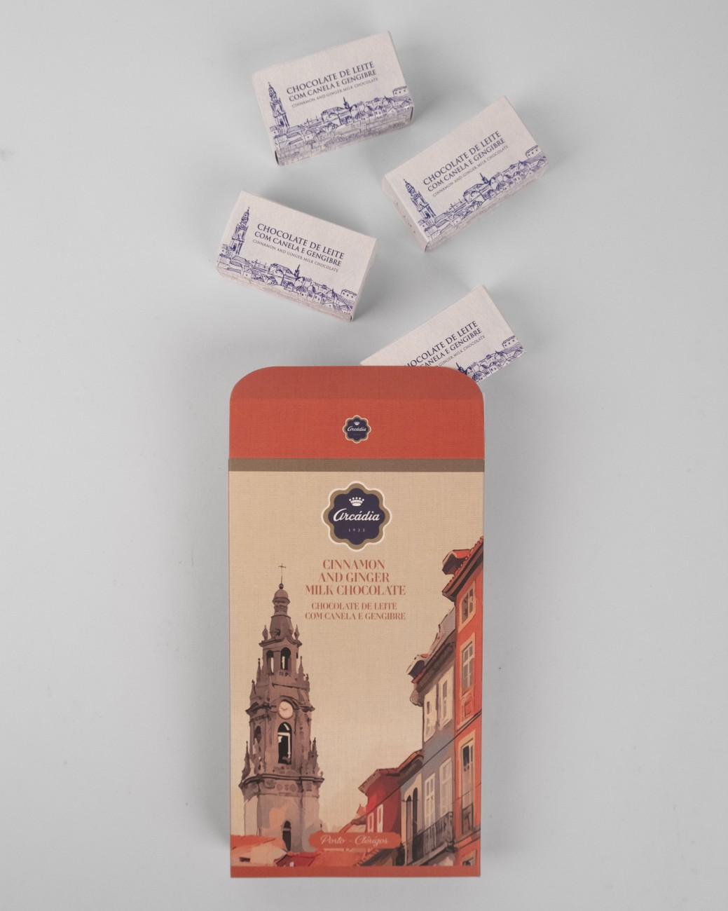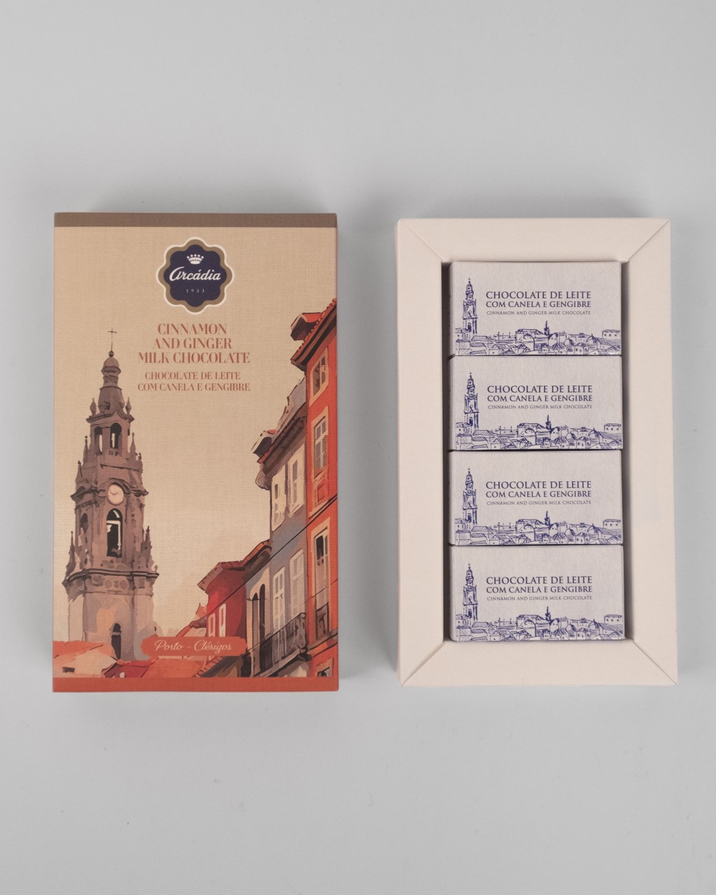 Inspired by the Clérigos Tower, one of Porto's most recognized monuments, these bonbons combine the smooth flavor of milk chocolate with notes of cinnamon and ginger, evoking the aromas of the discoveries and spices that marked Portuguese history.