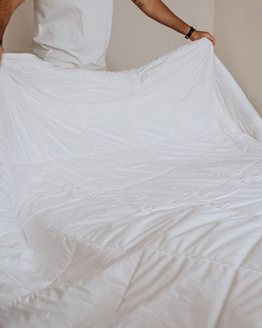 Offering excellent thermal insulation, wool also has the advantage of being hypoallergenic, which helps prevent allergies and irritation. Furthermore, weight is also an important factor when choosing the perfect duvet for a good night's sleep, deep and continuous.