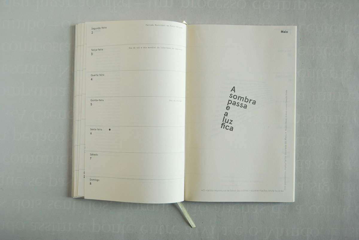 Dos Açores para o mundo, um grupo de criadores de diferentes áreas edita pelo terceiro ano consecutivo uma agenda temática, que em 2016 versa a luz. André Laranjinha, Diana Diegues, Maria Emanuel Albergaria e Nuno Marques da Silva contribuem para a selecção de conteúdos (que variam das citações literárias aos dados científicos), capazes de espicaçar a curiosidade a iluminar os dias - até mais cinzentos - das várias estações. Júlia Garcia, no atelier Alice's House, ocupa-se do grafismo. E para a impressão recorrem à muito antiga Tipografia Micaelense, onde os recursos podem não abundar mas a criatividade é encorajada pela beleza dos tipos móveis e a intervenção manual; a que se lançam não só os envolvidos mas também amigos e familiares, tornando o evento numa alegre descoberta, em que todos são dirigidos pelo mestre tipógrafo Dinis Botelho e pelo mestre de acabamentos Eduardo Furtado. E a voz de Júlia (que nos explica tudo isto pelo telefone) alegra-se ainda mais para falar do privilégio de aprendiza que é “manobrar a máquina”, agora que já vai no quarto ano de formação desta técnica à moda antiga cujo charme não esmorece. O resultado final comprova-o e está aí, num mimo de riqueza de pormenores, para nos iluminar o ano inteiro.