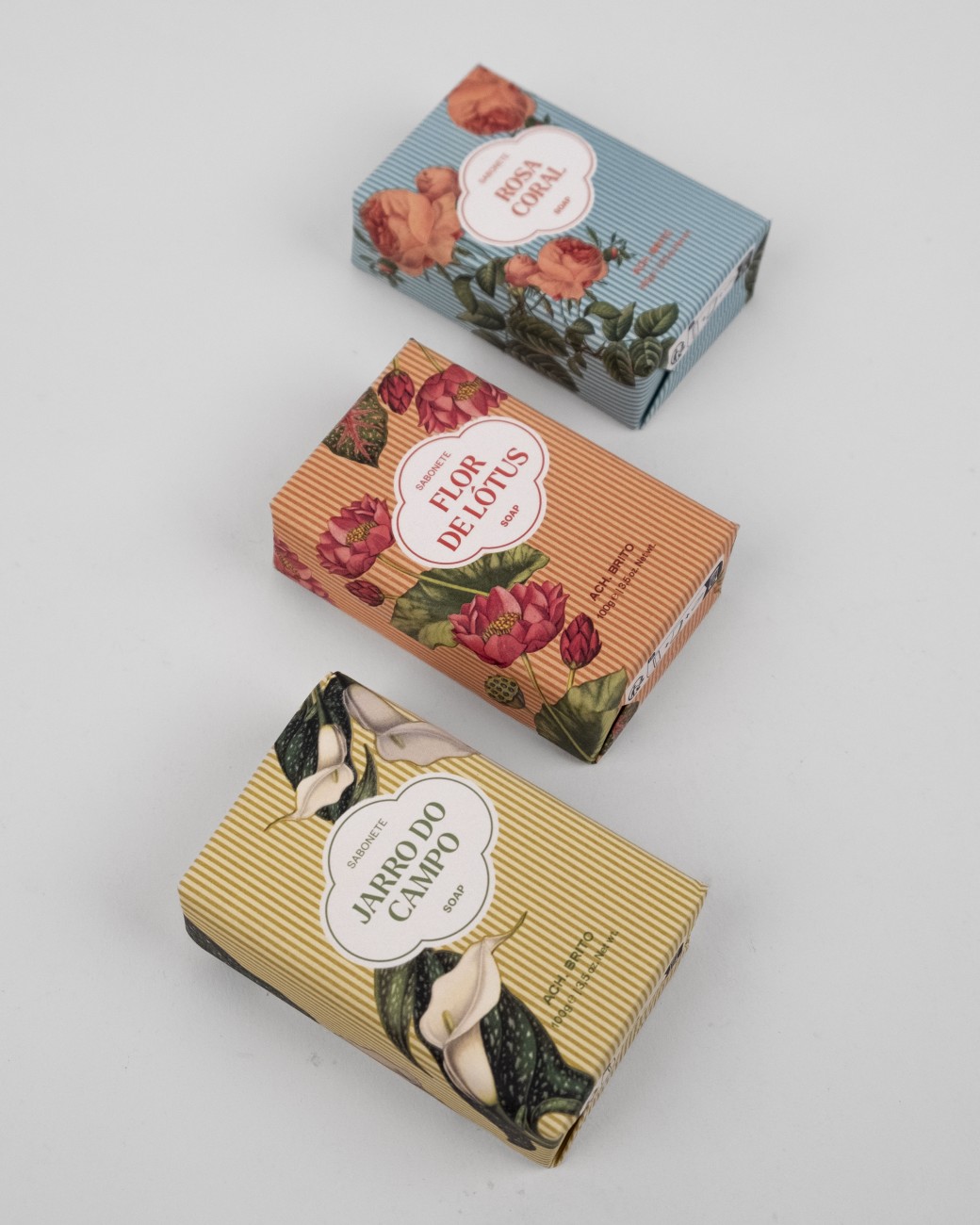 Deve-se a dois alemães a fundação, em 1887 no Porto, da primeira fábrica nacional de sabonetes e perfumes que, após a primeira guerra mundial, passaria para as mãos portuguesas do colaborador Achilles Alves de Brito. Recuperando as suas embalagens históricas, usando apenas ingredientes naturais, estes sabonetes têm ainda uma componente de manufactura. E a sua fresquíssima colónia Lavanda vem perfumando os portugueses, ao longo das décadas.