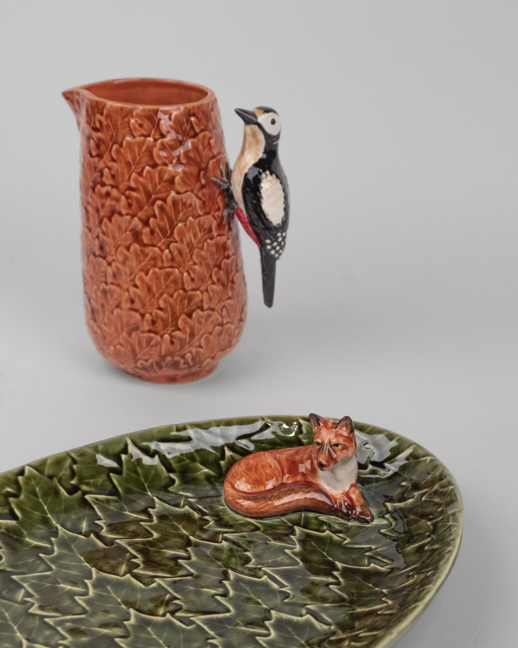 O outono, com as bolotas e as folhas que caem, ocupa um lugar muito especial no meu coração. Em criança, adorava assistir à transformação das cores e saltar para os montes de folhas que a minha mãe meticulosamente empilhava no nosso jardim. Com ela, secava essas folhas e criávamos belos trabalhos artísticos. As peças de cerâmica que criei foram concebidas para as minhas mesas de madeira de meados do século passado e para infundir a minha casa com os tons quentes do outono. Também encontram um lugar nos meus retiros campestres de fim de semana, com as suas cores acolhedoras que acentuam o conforto de uma lareira crepitante. Aprecio a forma como estas peças conferem um toque subtil ao espaço, combinando lindamente com hortênsias verdes, clássicas do outono.
